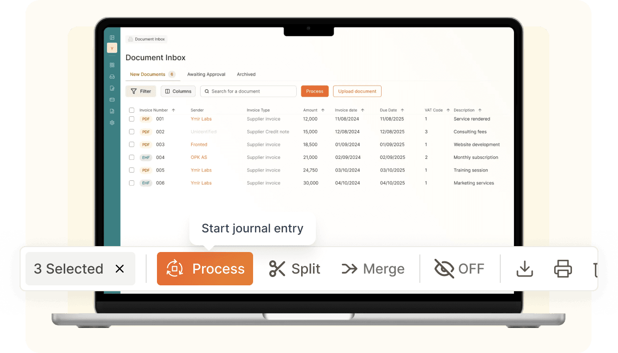 Bilagene organiserer seg automatisk i innboksen og gir full oversikt. Dette gir igjen gode muligheter for å bygge på med videre automatisering av bokføringsprosessen